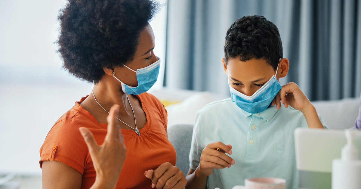The Centers for Disease Control and Prevention (CDC) recommends staying at least six feet away from those in your household and wearing a mask whenever you’re near them. According to the CDC, wearing a mask reduces the risk of spreading COVID to others by preventing respiratory droplets from being released into the air. If you’re unable to wear a mask, always cover your nose and mouth with your elbow or a tissue every time you cough or sneeze. It’s also important to frequently wash your hands with soap and water for at least 20 seconds, especially after sneezing or coughing. When soap and water aren’t available, you can clean your hands with an alcohol-based hand sanitizer that contains at least 70% alcohol.
